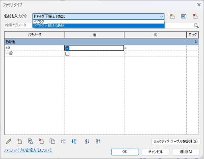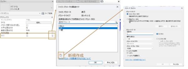 - ファミリパラメータの関連付けで表示させたい項目を選びます