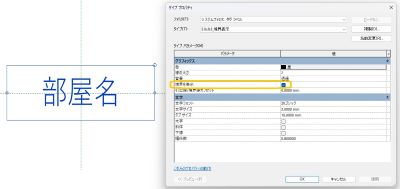 - ラベルを選択し、プロパティの「タイプ編集」をクリック